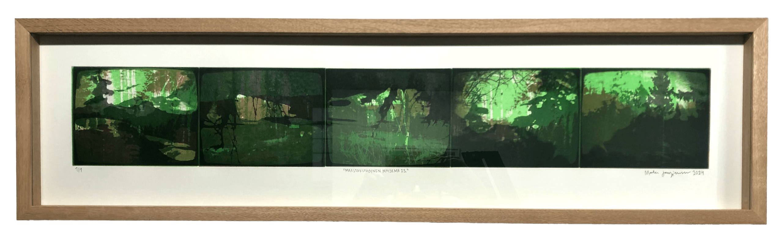 Heliogravyyri, uniikkivedos. Tammikehys. Kuvan koko: 14 x 90 cm.