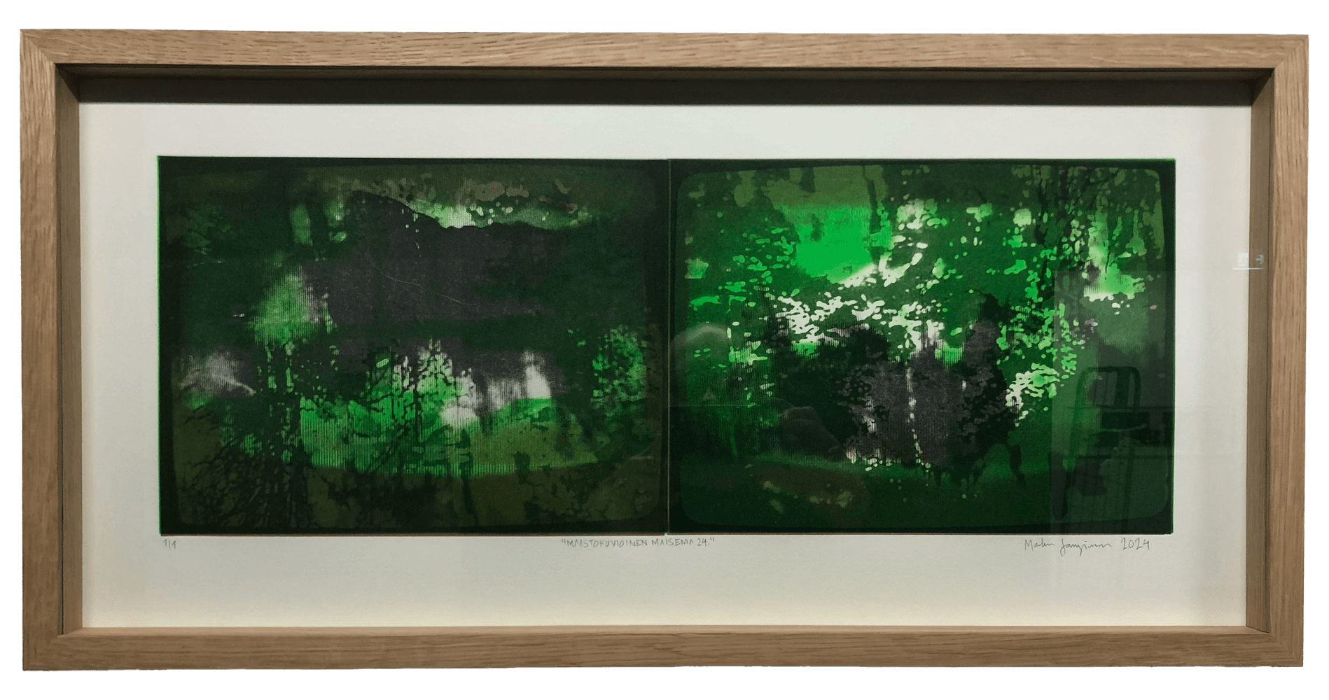 Heliogravyyri, uniikkivedos. Tammikehys. Kuvan koko: 23 x 60 cm.
